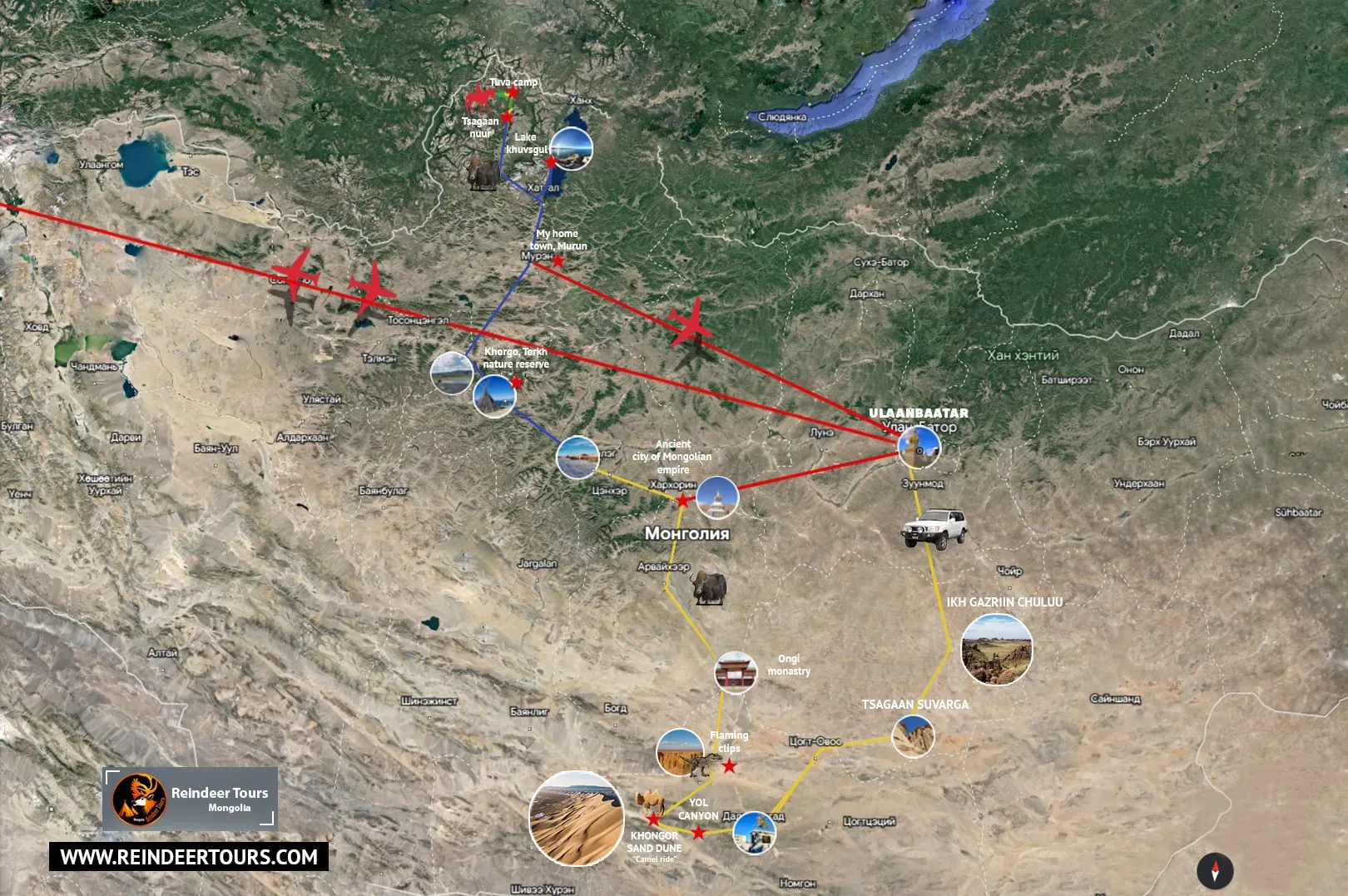Our tours cover Mongolia from the Altai Mountains in the west to the Gobi Desert in the south, with the reindeer herders of the north and the historic heartland in between.